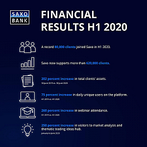 Among the most notable figures, Saxo was able to double its operating income in the first half of this year to DKK 2.3 billion, as compared to DKK 1.1 billion in 2019. The broker also indicated that a record number of new customers joined the company during this period – some 80,000, indicating that Saxo’s customer support, education and tools may be very attractive to new traders and investors, seeking to take advantage of recent market volatility.